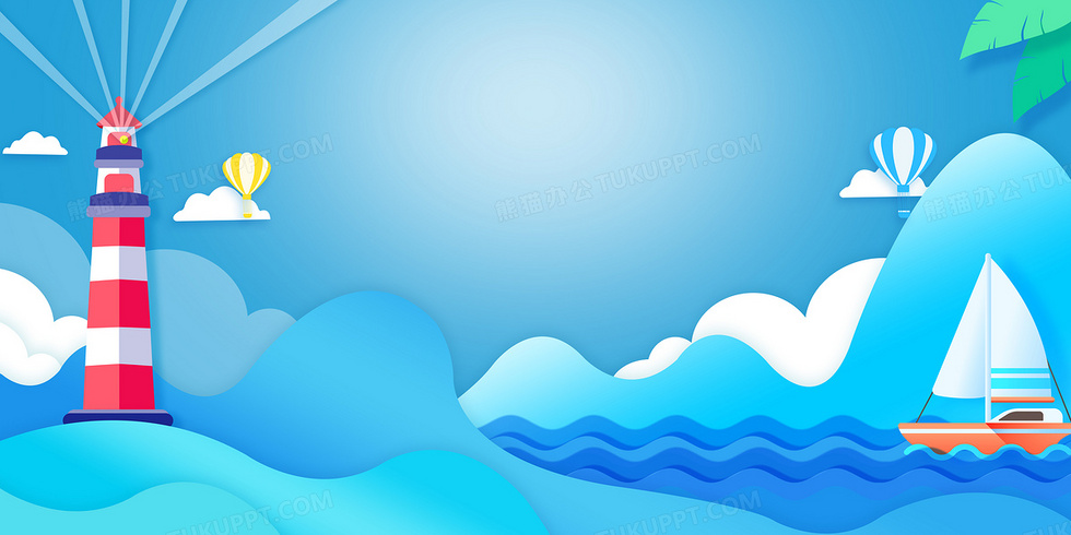 本作品内容为夏天大海海浪帆船灯塔夏季剪纸风清凉背景, 格式为 psd, 大小14 MB, 图片尺寸为4724 x 2362, 作品中背景图片无需修改, 源文件无水印,可以直接使用, 欢迎使用熊猫办公。 如认为平台内容涉嫌侵权,可通过邮件:tousu@tukuppt.com提出书面通知,我们将及时处理。