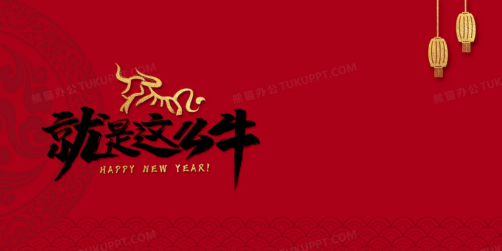 本作品内容为红色简约大气就是这么牛2021牛年背景, 格式为 psd, 大小32 MB, 图片尺寸为4724 x 2362, 作品中背景图片无需修改, 源文件无水印,可以直接使用, 欢迎使用熊猫办公。 如认为平台内容涉嫌侵权,可通过邮件:tousu@tukuppt.com提出书面通知,我们将及时处理。