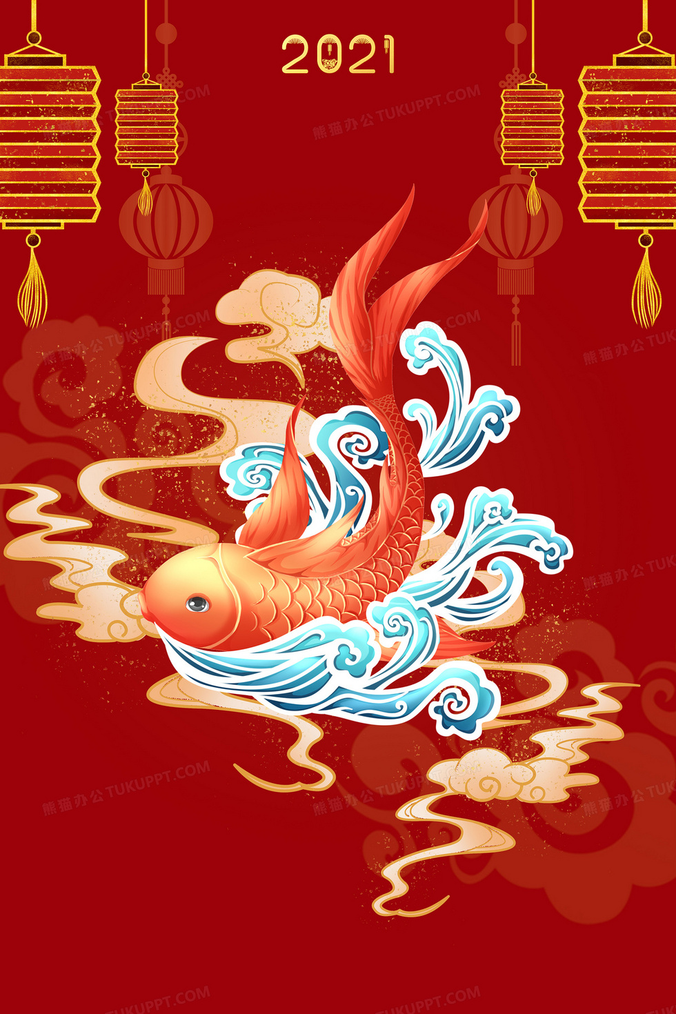 本作品内容为简约喜庆中国风新年锦鲤背景, 格式为 psd, 大小51 MB, 图片尺寸为3543 x 5315, 作品中背景图片无需修改, 源文件无水印,可以直接使用, 欢迎使用熊猫办公。 如认为平台内容涉嫌侵权,可通过邮件:tousu@tukuppt.com提出书面通知,我们将及时处理。