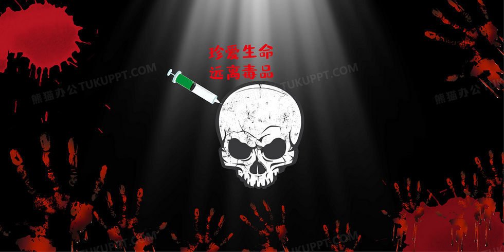 本作品内容为黑色国际禁毒日骷髅创意背景, 格式为 ai, 大小6 MB, 图片尺寸为4725 x 2363, 作品中背景图片无需修改, 源文件无水印,可以直接使用, 欢迎使用熊猫办公。 如认为平台内容涉嫌侵权,可通过邮件:tousu@tukuppt.com提出书面通知,我们将及时处理。