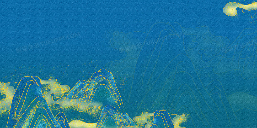 本作品内容为蓝色精致鎏金中国风山水背景, 格式为 psd, 大小122 MB, 图片尺寸为4724 x 2362, 作品中背景图片无需修改, 源文件无水印,可以直接使用, 欢迎使用熊猫办公。 如认为平台内容涉嫌侵权,可通过邮件:tousu@tukuppt.com提出书面通知,我们将及时处理。