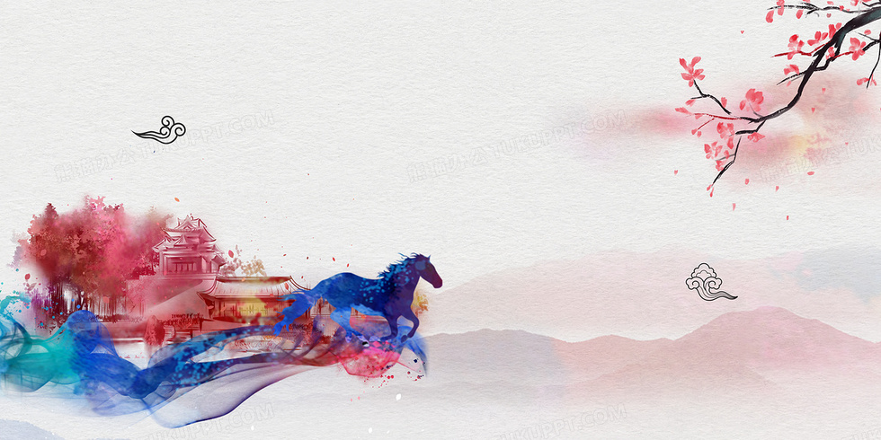 本作品内容为以梦为马水墨中国风水彩背景, 格式为 psd, 大小74 MB, 图片尺寸为4724 x 2362, 作品中背景图片无需修改, 源文件无水印,可以直接使用, 欢迎使用熊猫办公。 如认为平台内容涉嫌侵权,可通过邮件:tousu@tukuppt.com提出书面通知,我们将及时处理。