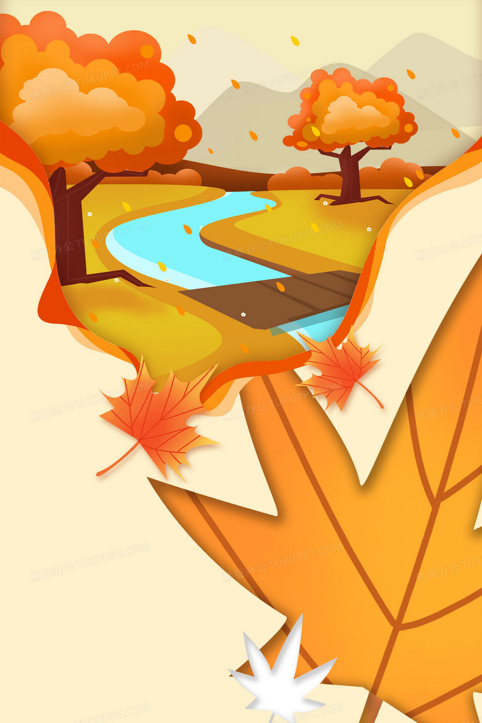 本作品内容为秋天唯美落叶剪纸风背景, 格式为 psd, 大小6 MB, 图片尺寸为2362 x 3543, 作品中背景图片无需修改, 源文件无水印,可以直接使用, 欢迎使用熊猫办公。 如认为平台内容涉嫌侵权,可通过邮件:tousu@tukuppt.com提出书面通知,我们将及时处理。