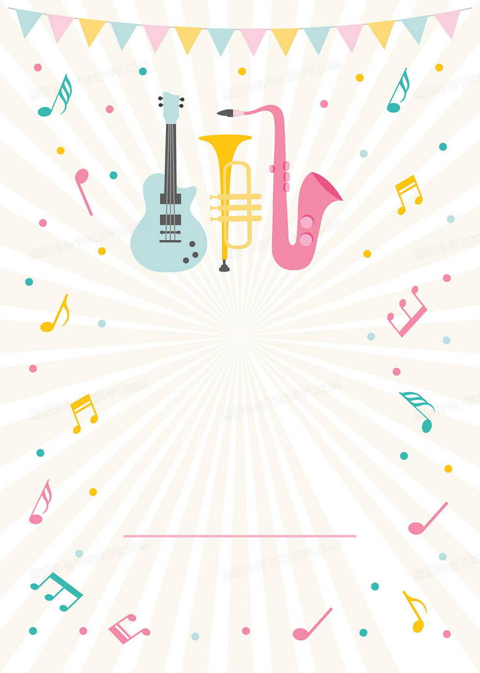本作品内容为节日音乐乐器几何清新海报背景, 格式为 ai, 图片尺寸为3626 x 5079, 作品中背景图片无需修改, 源文件无水印,可以直接使用, 欢迎使用熊猫办公。 如认为平台内容涉嫌侵权,可通过邮件:tousu@tukuppt.com提出书面通知,我们将及时处理。