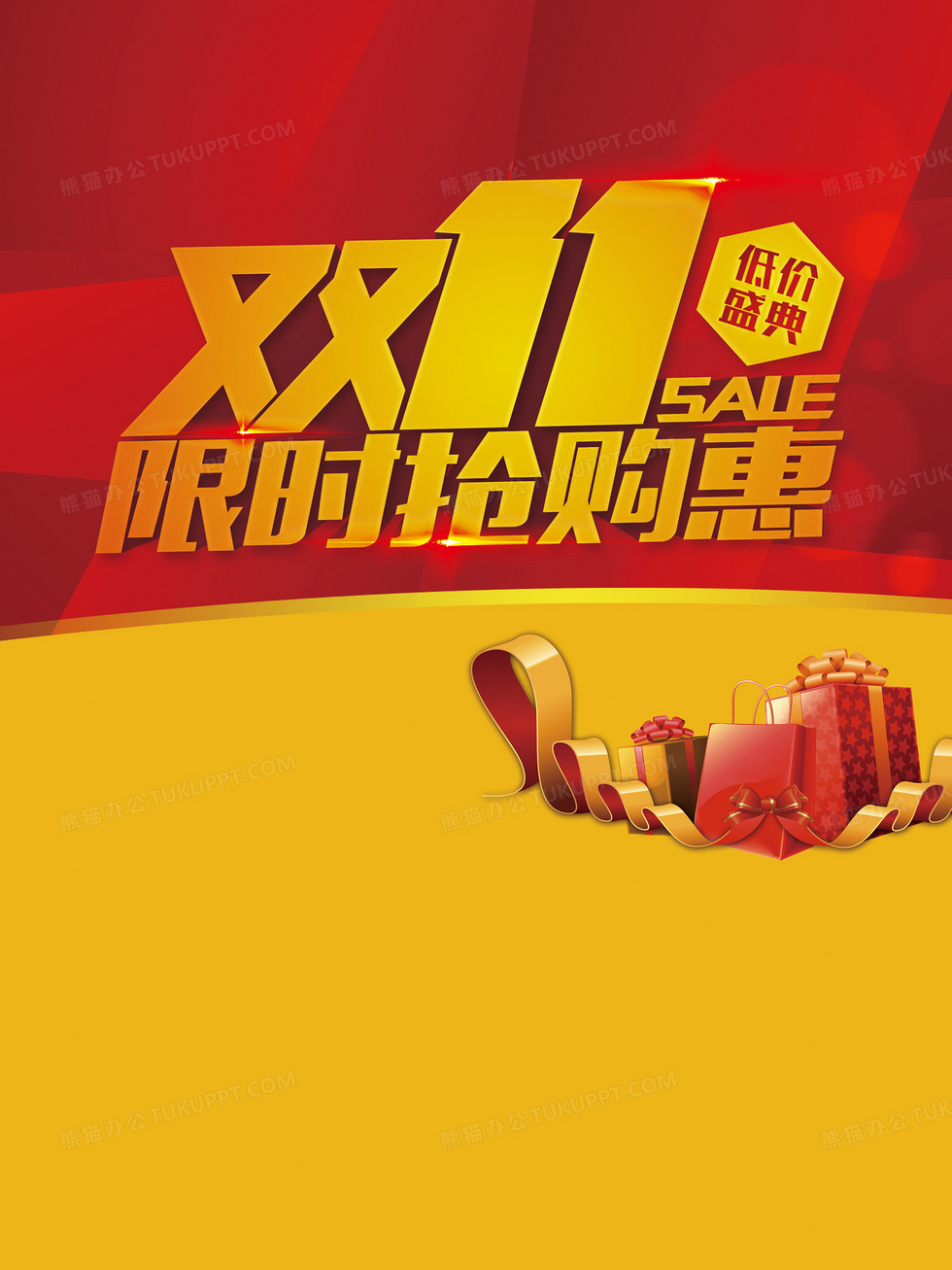 本作品内容为双十一促销礼物海报, 格式为 psd, 图片尺寸为3579 x 4773, 作品中背景图片无需修改, 源文件无水印,可以直接使用, 欢迎使用熊猫办公。 如认为平台内容涉嫌侵权,可通过邮件:tousu@tukuppt.com提出书面通知,我们将及时处理。