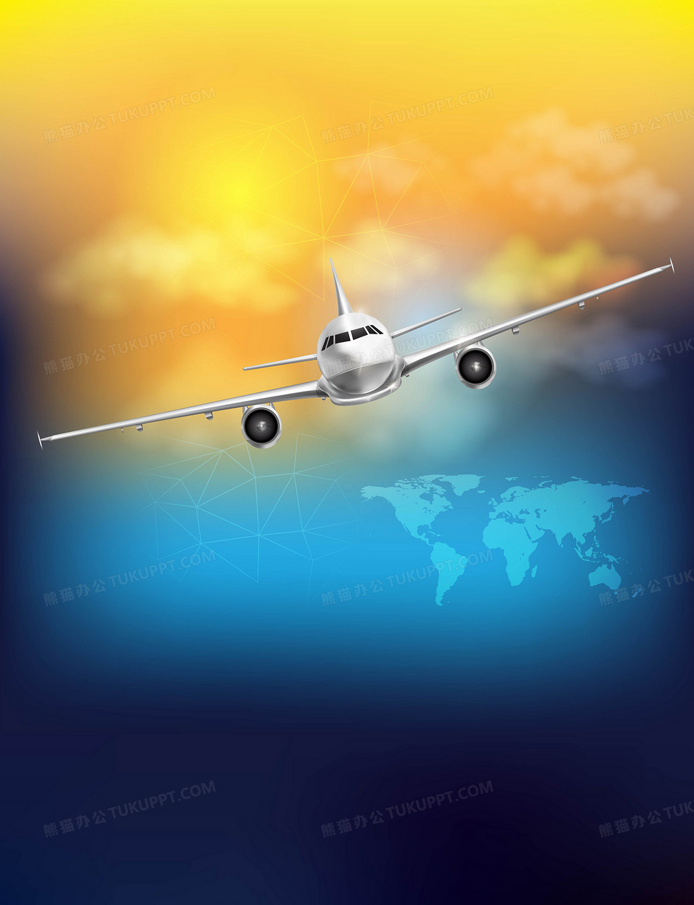 本作品内容为矢量炫光航空飞机旅行旅游背景, 格式为 ai, 图片尺寸为4581 x 5975, 作品中背景图片无需修改, 源文件无水印,可以直接使用, 欢迎使用熊猫办公。 如认为平台内容涉嫌侵权,可通过邮件:tousu@tukuppt.com提出书面通知,我们将及时处理。