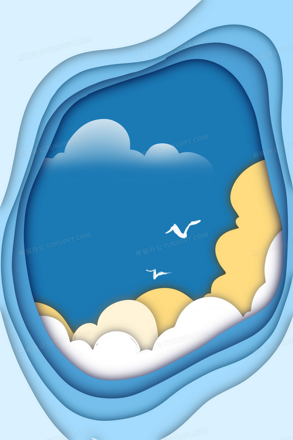 本作品内容为蓝色夏日蓝天白云剪纸手绘插画背景, 格式为 psd, 大小20 MB, 图片尺寸为3543 x 5315, 作品中背景图片无需修改, 源文件无水印,可以直接使用, 欢迎使用熊猫办公。 如认为平台内容涉嫌侵权,可通过邮件:tousu@tukuppt.com提出书面通知,我们将及时处理。