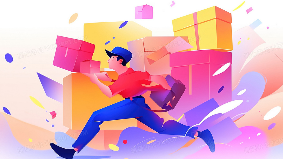 本作品内容为快速送快递的快递员插画, 格式为 jpg, 大小2 MB, 图片尺寸为2912 x 1632, 源文件无水印, 欢迎使用熊猫办公。 如认为平台内容涉嫌侵权,可通过邮件:tousu@tukuppt.com提出书面通知,我们将及时处理。