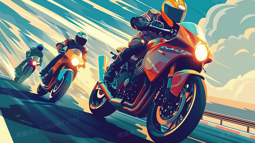 本作品内容为摩托车车队比赛的年轻人插画, 格式为 jpg, 大小4 MB, 图片尺寸为2912 x 1632, 源文件无水印, 欢迎使用熊猫办公。 如认为平台内容涉嫌侵权,可通过邮件:tousu@tukuppt.com提出书面通知,我们将及时处理。
