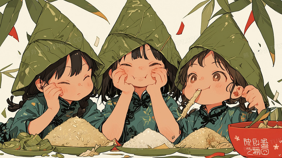 首页 > 插画 > 科技艺术 > 卡通漫画 > 端午吃粽子的三个孩子插画