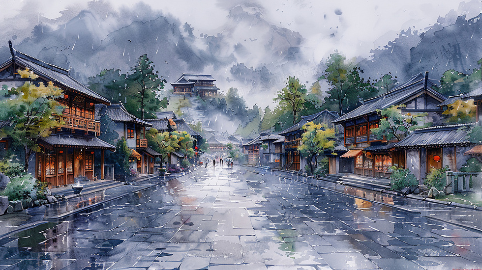 首页 > 插画 > 科技艺术 > 中国风 > 中国风古典街道水墨插画