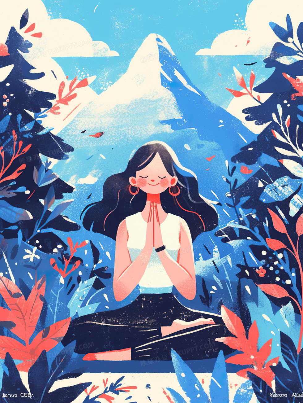 本作品内容为蓝天白云在花丛中做瑜伽插画, 格式为 jpg, 大小4 MB, 图片尺寸为1856 x 2464, 源文件无水印, 欢迎使用熊猫办公。 如认为平台内容涉嫌侵权,可通过邮件:tousu@tukuppt.com提出书面通知,我们将及时处理。