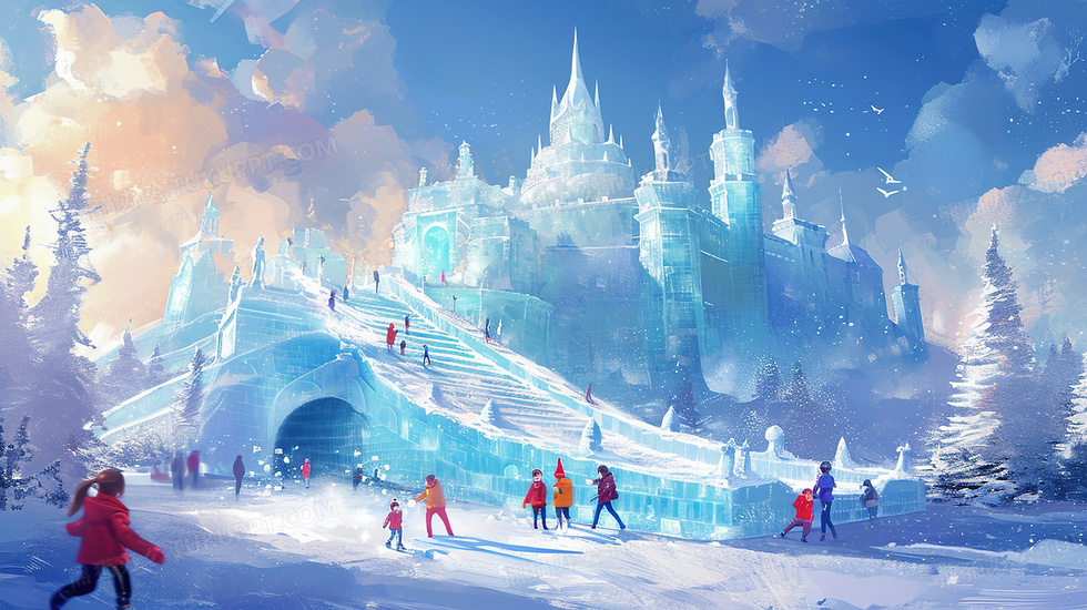 首页 > 插画 > 科技艺术 > 其他 > 冬天壮观的冰雕游乐园