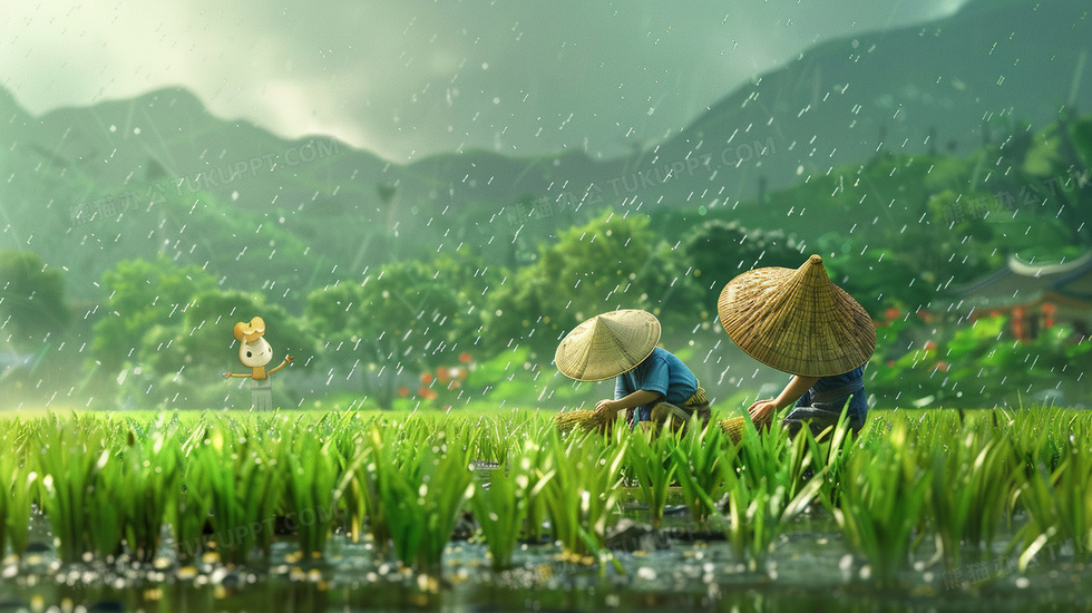本作品内容为春季清明雨天戴斗笠农民播种插画, 格式为 jpg, 大小4 MB, 图片尺寸为2912 x 1632, 源文件无水印, 欢迎使用熊猫办公。 如认为平台内容涉嫌侵权,可通过邮件:tousu@tukuppt.com提出书面通知,我们将及时处理。