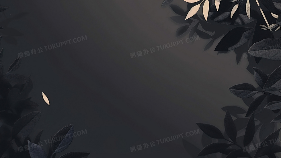 本作品内容为简约叶子装饰黑灰色背景, 格式为 jpg, 大小2 MB, 图片尺寸为2912 x 1632, 源文件无水印, 欢迎使用熊猫办公。 如认为平台内容涉嫌侵权,可通过邮件:tousu@tukuppt.com提出书面通知,我们将及时处理。