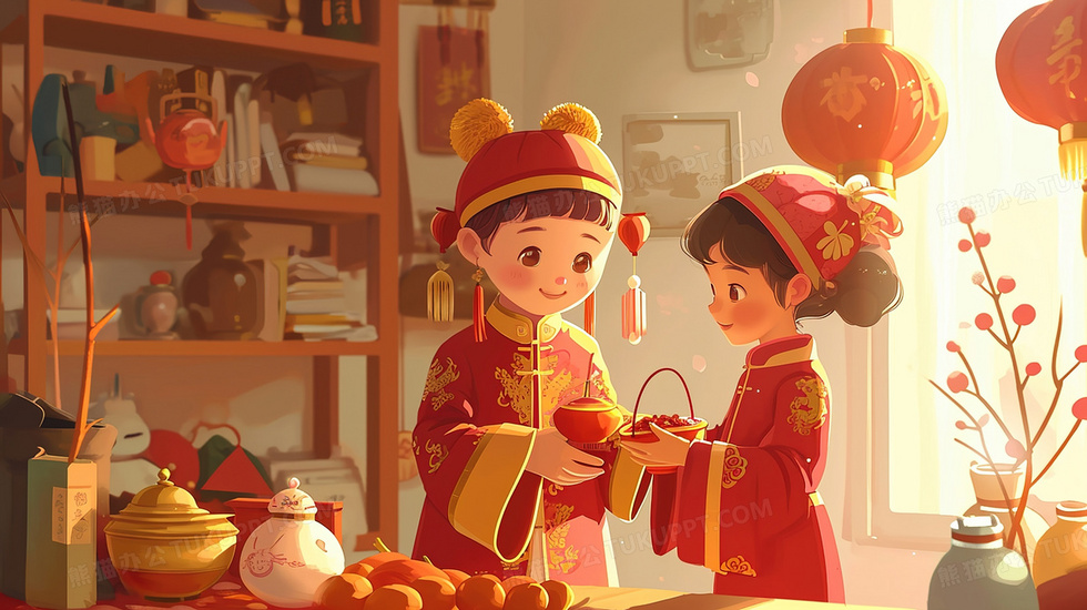 本作品内容为中式婚礼的小情侣插画, 格式为 jpg, 大小2 MB, 图片尺寸为2912 x 1632, 源文件无水印, 欢迎使用熊猫办公。 如认为平台内容涉嫌侵权,可通过邮件:tousu@tukuppt.com提出书面通知,我们将及时处理。