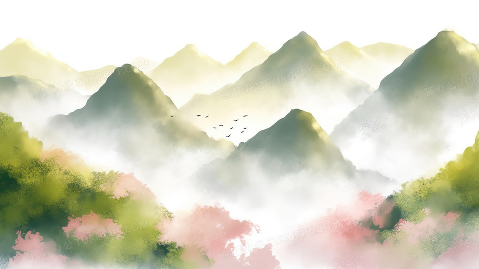 本作品内容为山雾袅绕的层层山峦中国山水插画, 格式为 jpg, 大小2 MB, 图片尺寸为2912 x 1632, 源文件无水印, 欢迎使用熊猫办公。 如认为平台内容涉嫌侵权,可通过邮件:tousu@tukuppt.com提出书面通知,我们将及时处理。