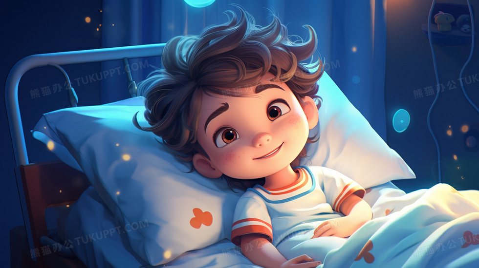 本作品内容为3D躺在病床上的小男孩插画, 格式为 jpg, 大小2 MB, 图片尺寸为2912 x 1632, 源文件无水印, 欢迎使用熊猫办公。 如认为平台内容涉嫌侵权,可通过邮件:tousu@tukuppt.com提出书面通知,我们将及时处理。