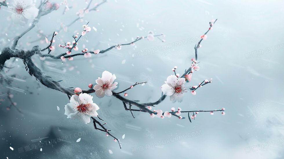本作品内容为中国风水墨白梅花插画, 格式为 jpg, 大小3 MB, 图片尺寸为2912 x 1632, 源文件无水印, 欢迎使用熊猫办公。 如认为平台内容涉嫌侵权,可通过邮件:tousu@tukuppt.com提出书面通知,我们将及时处理。