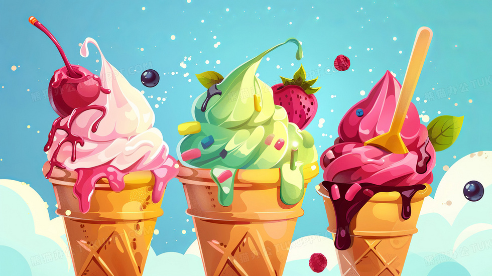 本作品内容为夏日美食彩色冰淇淋插画, 格式为 jpg, 大小3 MB, 图片尺寸为2912 x 1632, 源文件无水印, 欢迎使用熊猫办公。 如认为平台内容涉嫌侵权,可通过邮件:tousu@tukuppt.com提出书面通知,我们将及时处理。