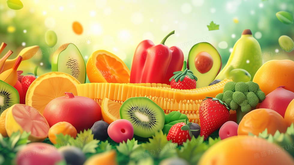 本作品内容为彩色素食日3D立体蔬菜水果图片, 格式为 jpg, 大小3 MB, 图片尺寸为2912 x 1632, 源文件无水印, 欢迎使用熊猫办公。 如认为平台内容涉嫌侵权,可通过邮件:tousu@tukuppt.com提出书面通知,我们将及时处理。
