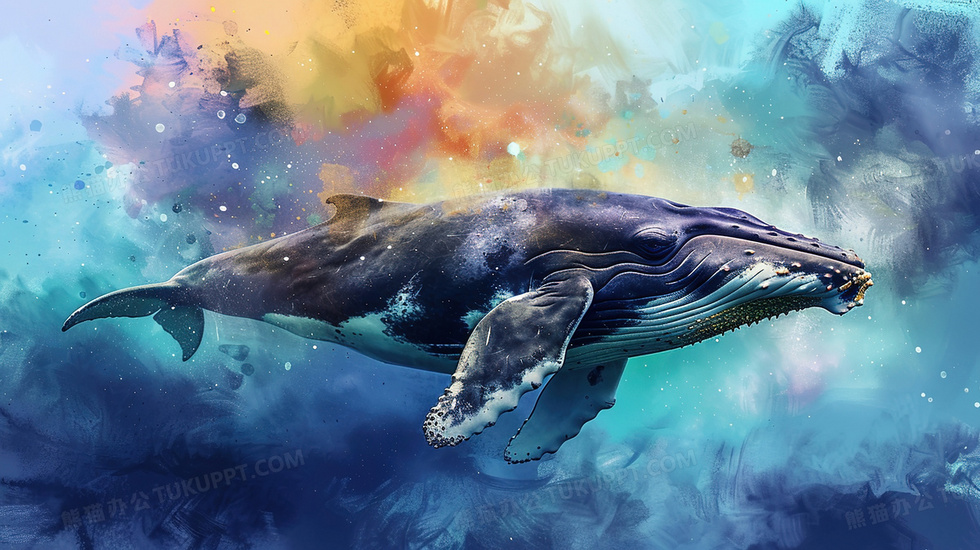 本作品内容为晚霞海水里游泳的鲸鱼插画, 格式为 jpg, 大小3 MB, 图片尺寸为2912 x 1632, 源文件无水印, 欢迎使用熊猫办公。 如认为平台内容涉嫌侵权,可通过邮件:tousu@tukuppt.com提出书面通知,我们将及时处理。
