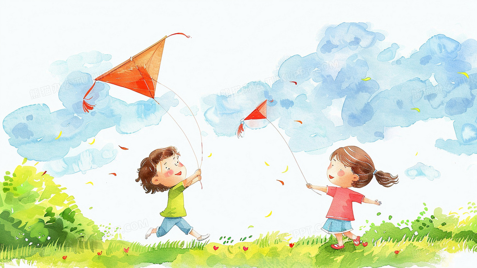本作品内容为蓝色背景下两个孩子在草地上放风筝插画, 格式为 jpg, 大小3 MB, 图片尺寸为2912 x 1632, 源文件无水印, 欢迎使用熊猫办公。 如认为平台内容涉嫌侵权,可通过邮件:tousu@tukuppt.com提出书面通知,我们将及时处理。