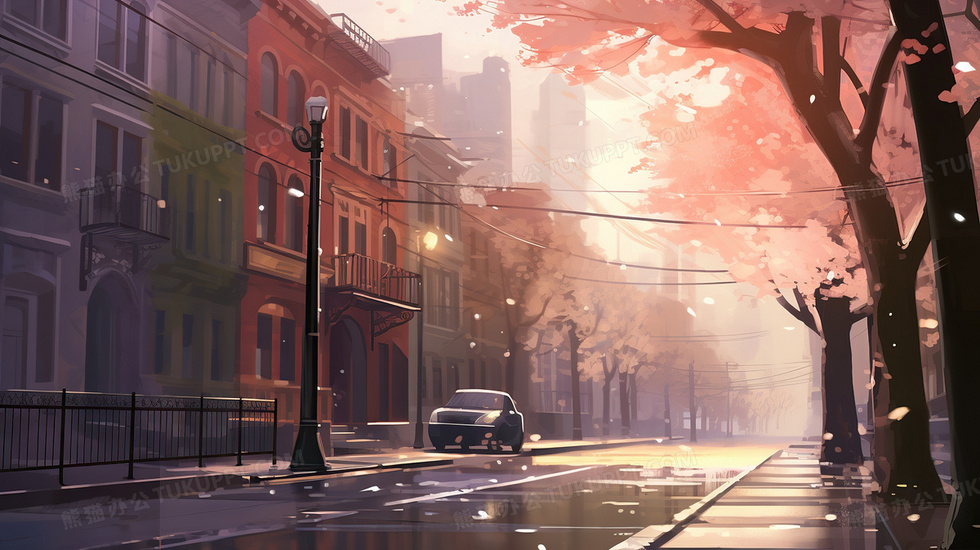 本作品内容为春天雨天街道风景下雨天插画, 格式为 jpg, 大小3 MB, 图片尺寸为2912 x 1632, 源文件无水印, 欢迎使用熊猫办公。 如认为平台内容涉嫌侵权,可通过邮件:tousu@tukuppt.com提出书面通知,我们将及时处理。