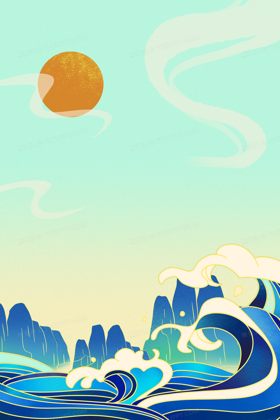 本作品内容为蓝色国潮复古海浪合成背景, 格式为 psd, 大小75 MB, 图片尺寸为3543 x 5314, 作品中背景图片无需修改, 源文件无水印,可以直接使用, 欢迎使用熊猫办公。 如认为平台内容涉嫌侵权,可通过邮件:tousu@tukuppt.com提出书面通知,我们将及时处理。