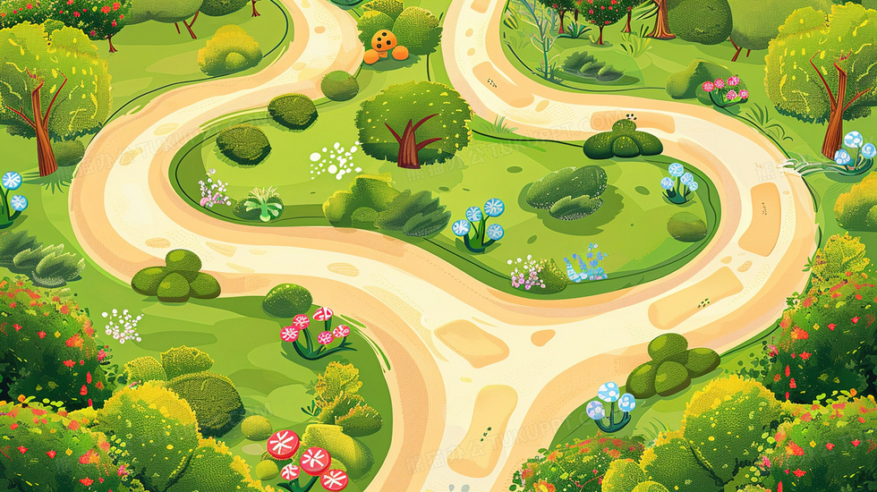 本作品内容为绿色蜿蜒的林间乡村小路插画, 格式为 jpg, 大小4 MB, 图片尺寸为2912 x 1632, 源文件无水印, 欢迎使用熊猫办公。 如认为平台内容涉嫌侵权,可通过邮件:tousu@tukuppt.com提出书面通知,我们将及时处理。