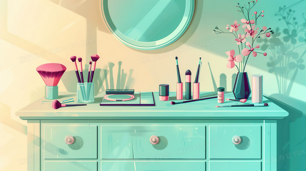 本作品内容为整齐的梳妆台化妆品插画, 格式为 jpg, 大小2 MB, 图片尺寸为2912 x 1632, 源文件无水印, 欢迎使用熊猫办公。 如认为平台内容涉嫌侵权,可通过邮件:tousu@tukuppt.com提出书面通知,我们将及时处理。