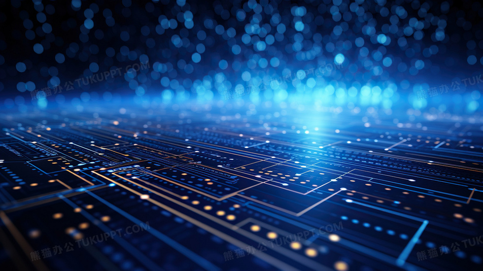 本作品内容为蓝色电路图商务科技光效背景, 格式为 jpg, 大小3 MB, 图片尺寸为2912 x 1632, 作品中背景图片无需修改, 源文件无水印,可以直接使用, 欢迎使用熊猫办公。 如认为平台内容涉嫌侵权,可通过邮件:tousu@tukuppt.com提出书面通知,我们将及时处理。