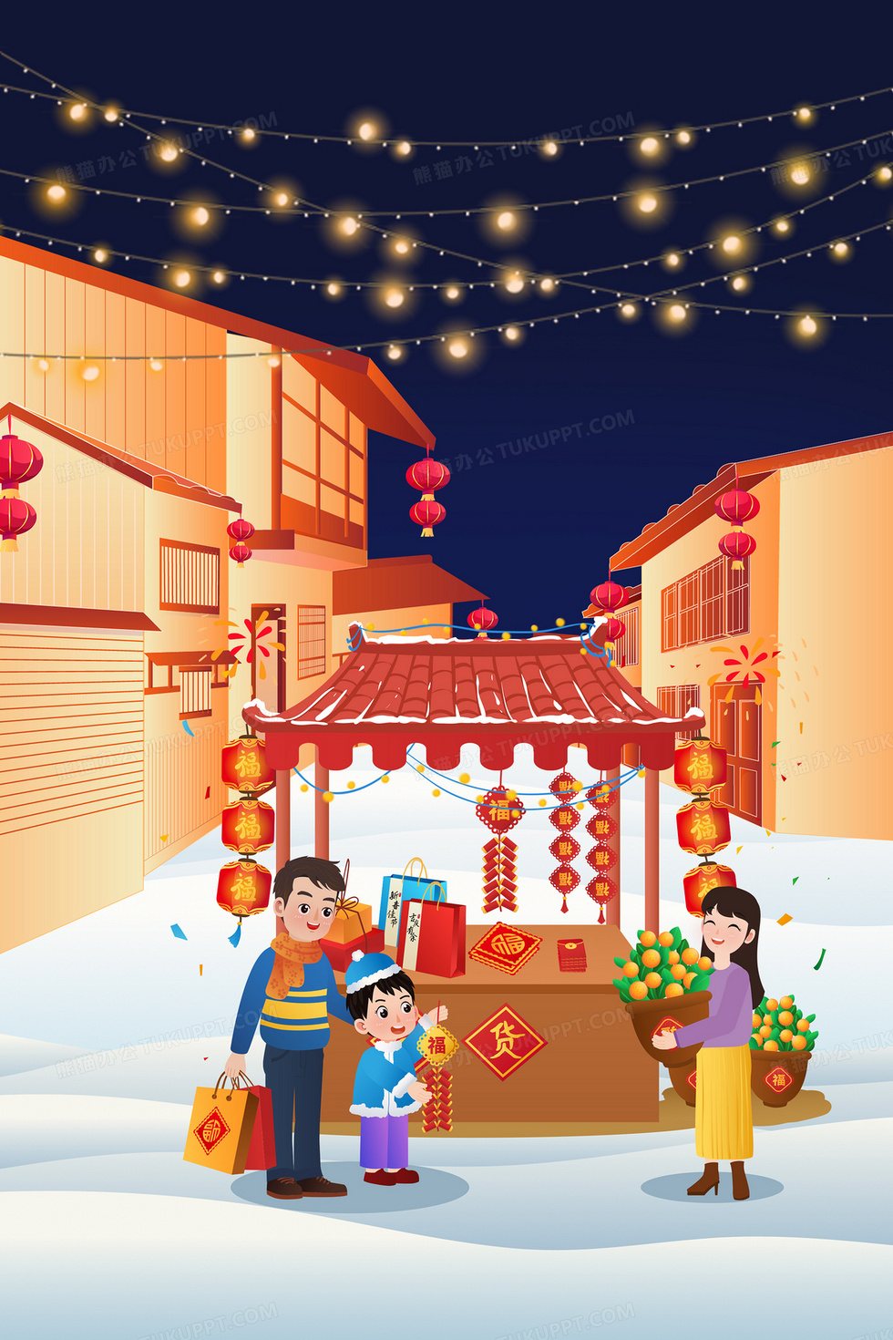 本作品内容为卡通插画红色年货节高清新年海报, 格式为 psd, 大小46 MB, 图片尺寸为3543 x 5314, 作品中背景图片无需修改, 源文件无水印,可以直接使用, 欢迎使用熊猫办公。 如认为平台内容涉嫌侵权,可通过邮件:tousu@tukuppt.com提出书面通知,我们将及时处理。