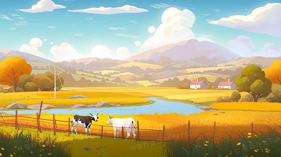 本作品内容为金色秋天郊外农庄唯美自然风光创意插画, 格式为 jpg, 大小3 MB, 图片尺寸为2912 x 1632, 源文件无水印, 欢迎使用熊猫办公。 如认为平台内容涉嫌侵权,可通过邮件:tousu@tukuppt.com提出书面通知,我们将及时处理。