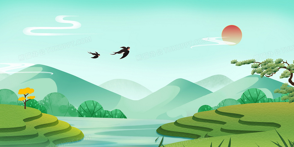 本作品内容为采茶梯田河流简约绿色背景, 格式为 psd, 大小39 MB, 图片尺寸为4722 x 2361, 作品中背景图片无需修改, 源文件无水印,可以直接使用, 欢迎使用熊猫办公。 如认为平台内容涉嫌侵权,可通过邮件:tousu@tukuppt.com提出书面通知,我们将及时处理。
