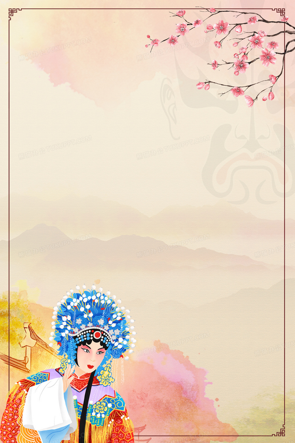 本作品内容为中国传统文化国粹京剧戏曲背景, 格式为 psd, 大小96 MB, 图片尺寸为3543 x 5315, 作品中背景图片无需修改, 源文件无水印,可以直接使用, 欢迎使用熊猫办公。 如认为平台内容涉嫌侵权,可通过邮件:tousu@tukuppt.com提出书面通知,我们将及时处理。