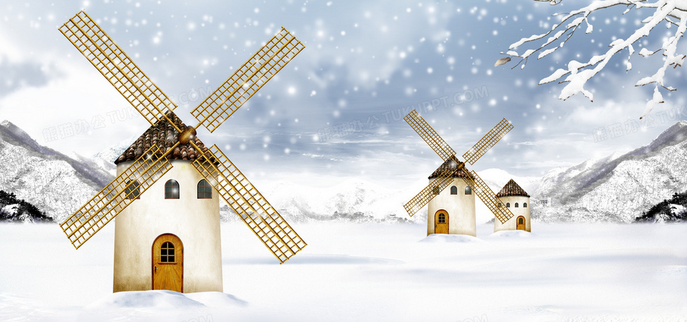 本作品内容为卡通冬天的风车, 格式为 psd, 图片尺寸为1920 x 900, 作品中背景图片无需修改, 源文件无水印,可以直接使用, 欢迎使用熊猫办公。 如认为平台内容涉嫌侵权,可通过邮件:tousu@tukuppt.com提出书面通知,我们将及时处理。