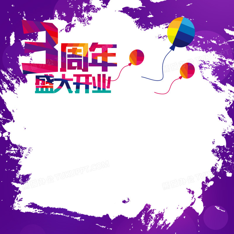 本作品内容为三周年开业涂抹风格背景图, 格式为 psd, 图片尺寸为800 x 800, 作品中背景图片无需修改, 源文件无水印,可以直接使用, 欢迎使用熊猫办公。 如认为平台内容涉嫌侵权,可通过邮件:tousu@tukuppt.com提出书面通知,我们将及时处理。