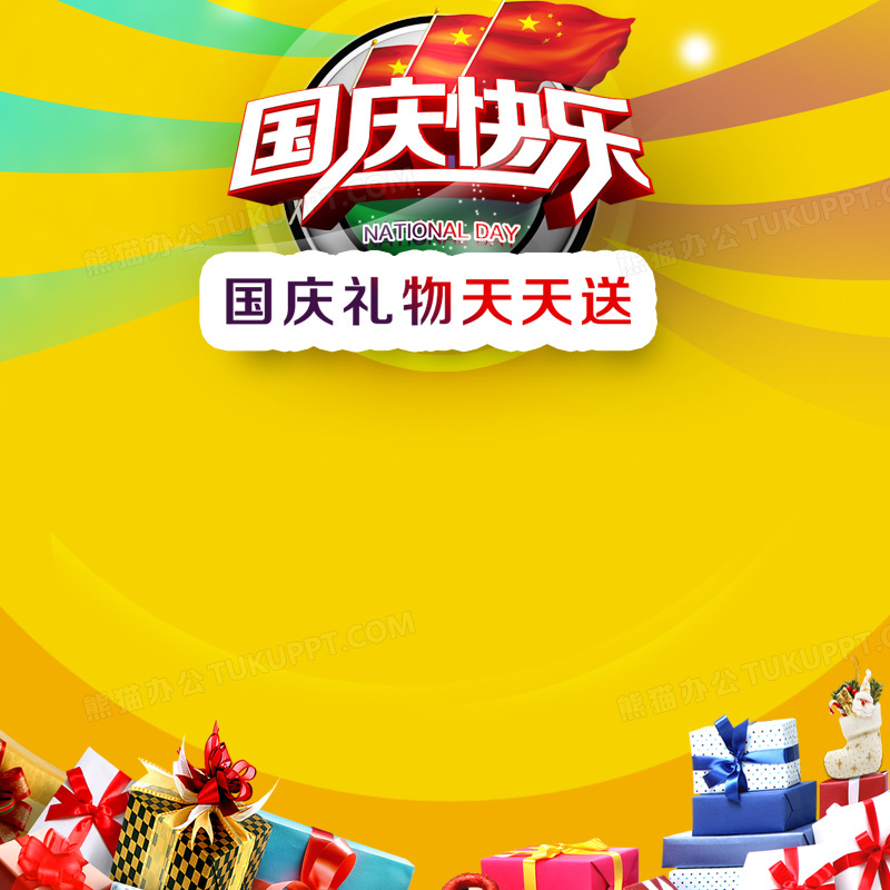本作品内容为国庆节狂欢礼物背景图, 格式为 psd, 图片尺寸为800 x 800, 作品中背景图片无需修改, 源文件无水印,可以直接使用, 欢迎使用熊猫办公。 如认为平台内容涉嫌侵权,可通过邮件:tousu@tukuppt.com提出书面通知,我们将及时处理。
