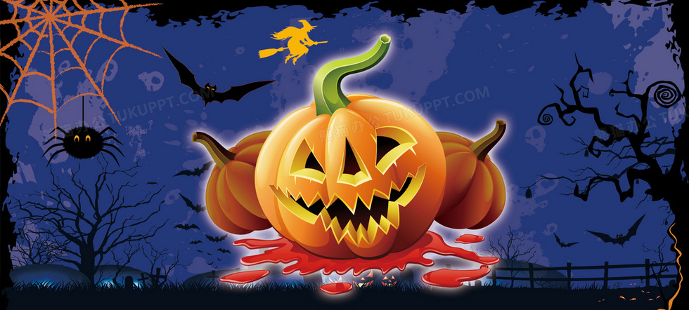 本作品内容为万圣节背景海报, 格式为 psd, 图片尺寸为1920 x 866, 作品中背景图片无需修改, 源文件无水印,可以直接使用, 欢迎使用熊猫办公。 如认为平台内容涉嫌侵权,可通过邮件:tousu@tukuppt.com提出书面通知,我们将及时处理。