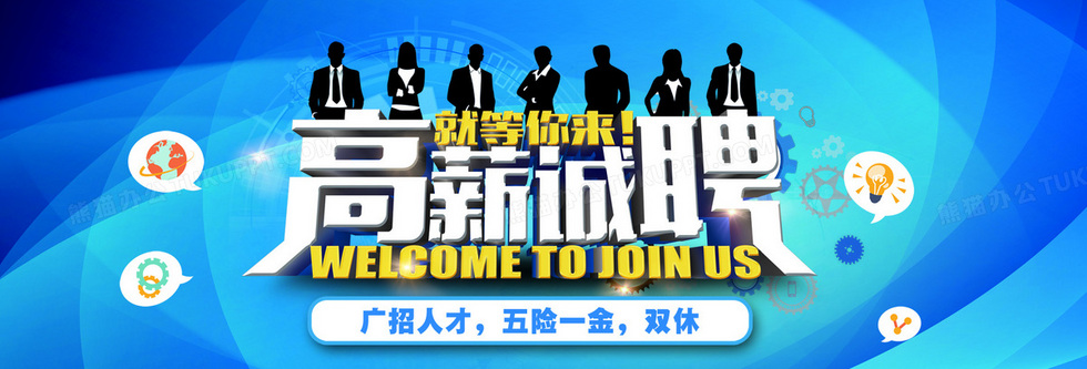 本作品内容为高薪诚聘就业背景, 格式为 psd, 图片尺寸为1920 x 653, 作品中背景图片无需修改, 源文件无水印,可以直接使用, 欢迎使用熊猫办公。 如认为平台内容涉嫌侵权,可通过邮件:tousu@tukuppt.com提出书面通知,我们将及时处理。