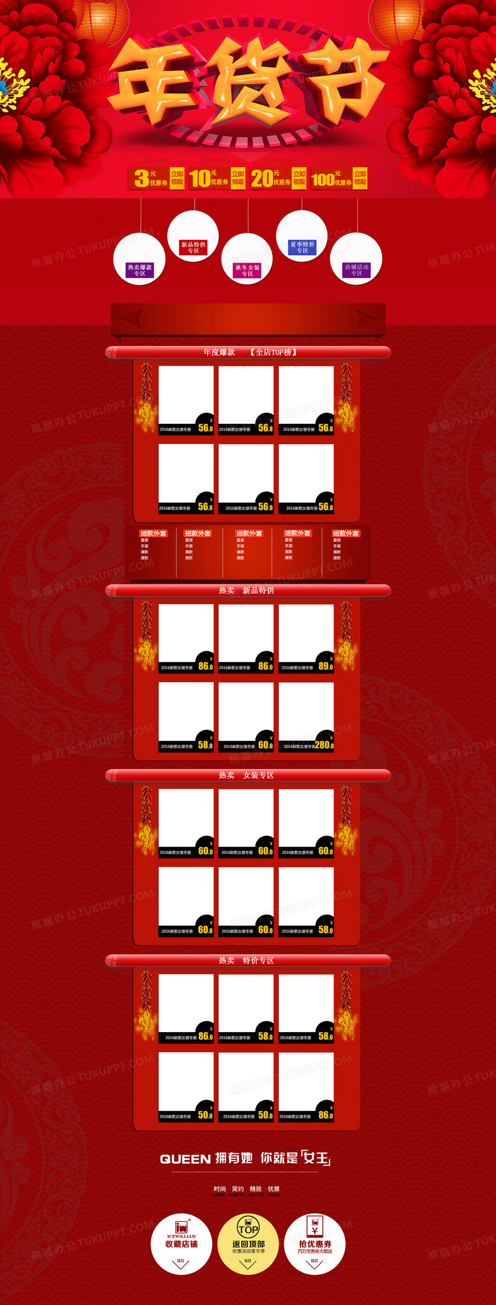 本作品内容为年货节首页背景, 格式为 psd, 图片尺寸为1920 x 5050, 作品中背景图片无需修改, 源文件无水印,可以直接使用, 欢迎使用熊猫办公。 如认为平台内容涉嫌侵权,可通过邮件:tousu@tukuppt.com提出书面通知,我们将及时处理。
