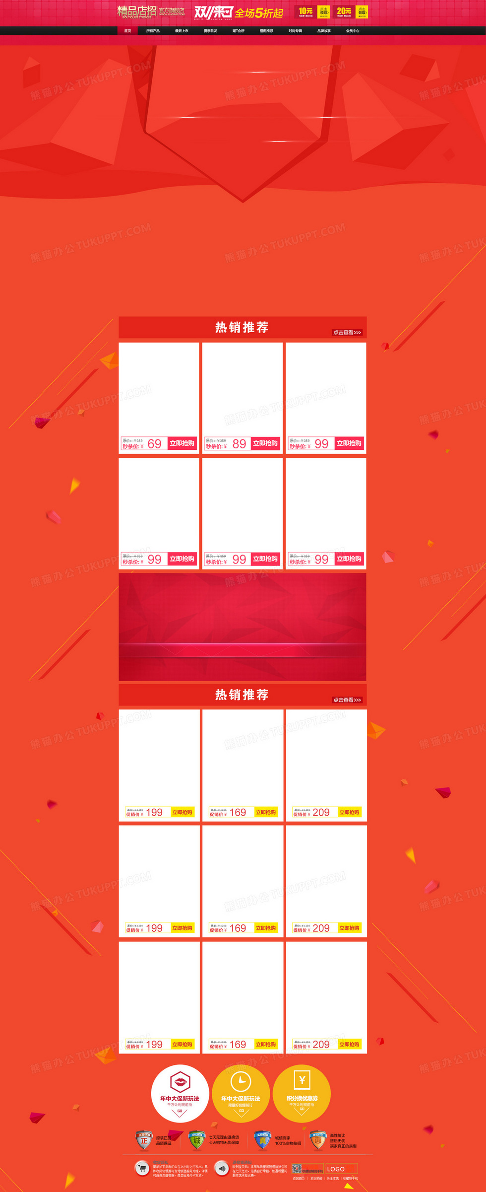 本作品内容为双十一店铺首页, 格式为 psd, 图片尺寸为1920 x 4704, 作品中背景图片无需修改, 源文件无水印,可以直接使用, 欢迎使用熊猫办公。 如认为平台内容涉嫌侵权,可通过邮件:tousu@tukuppt.com提出书面通知,我们将及时处理。