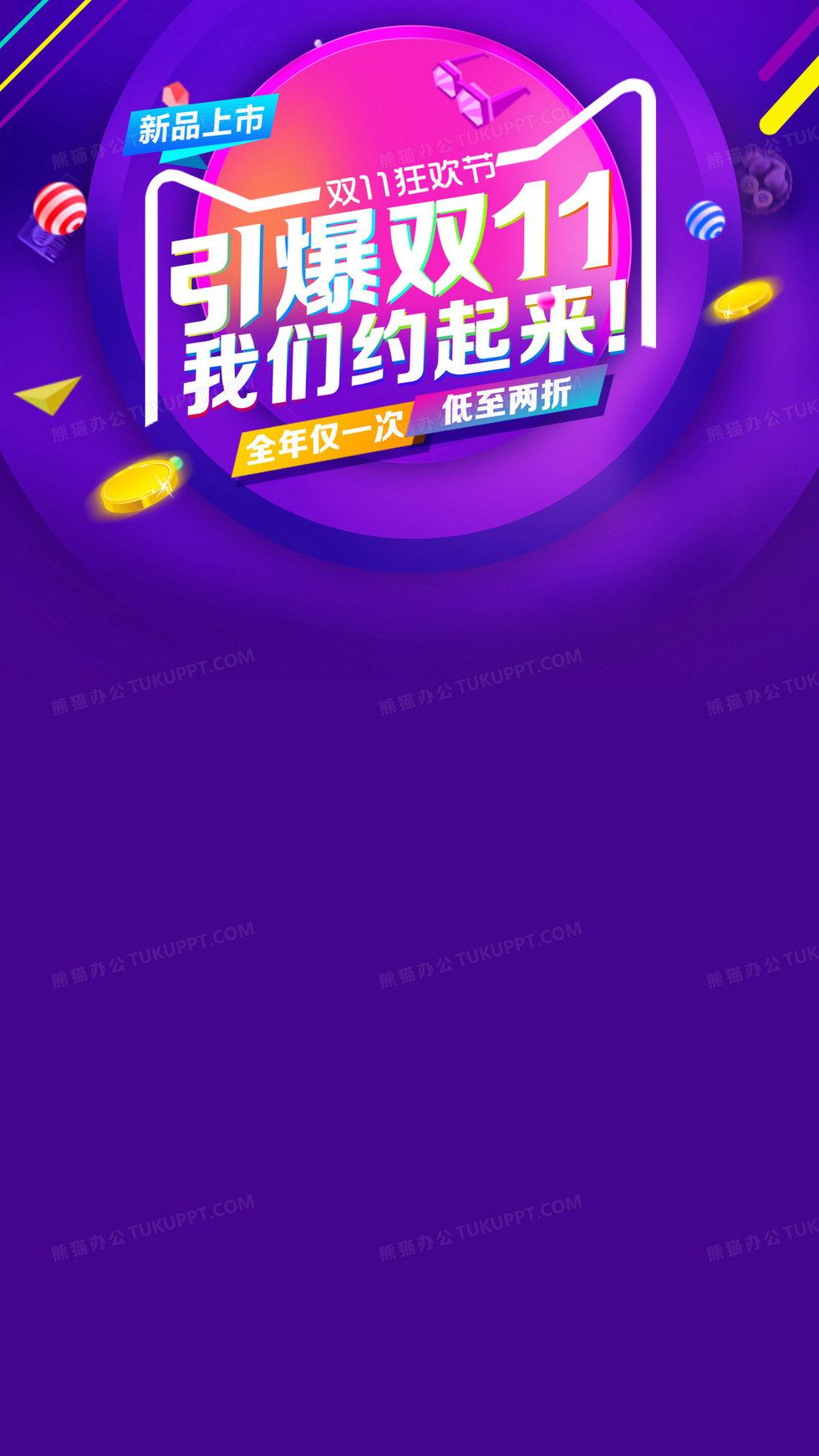 本作品内容为双11购物狂欢节H5背景, 格式为 psd, 图片尺寸为1242 x 2208, 作品中背景图片无需修改, 源文件无水印,可以直接使用, 欢迎使用熊猫办公。 如认为平台内容涉嫌侵权,可通过邮件:tousu@tukuppt.com提出书面通知,我们将及时处理。