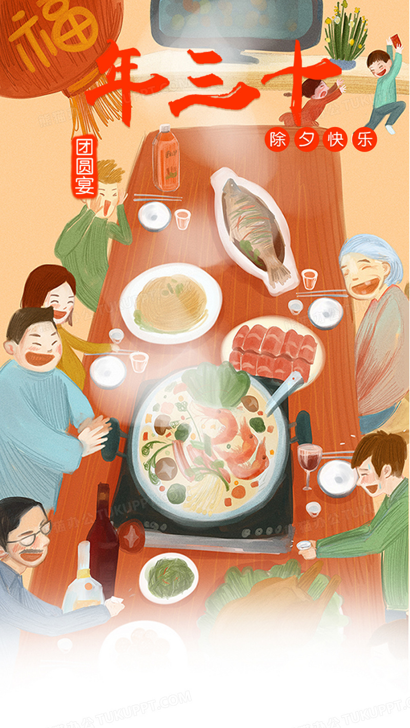 本作品内容为年三十团圆宴H5背景源文件下载, 格式为 psd, 图片尺寸为1080 x 1920, 作品中背景图片无需修改, 源文件无水印,可以直接使用, 欢迎使用熊猫办公。 如认为平台内容涉嫌侵权,可通过邮件:tousu@tukuppt.com提出书面通知,我们将及时处理。
