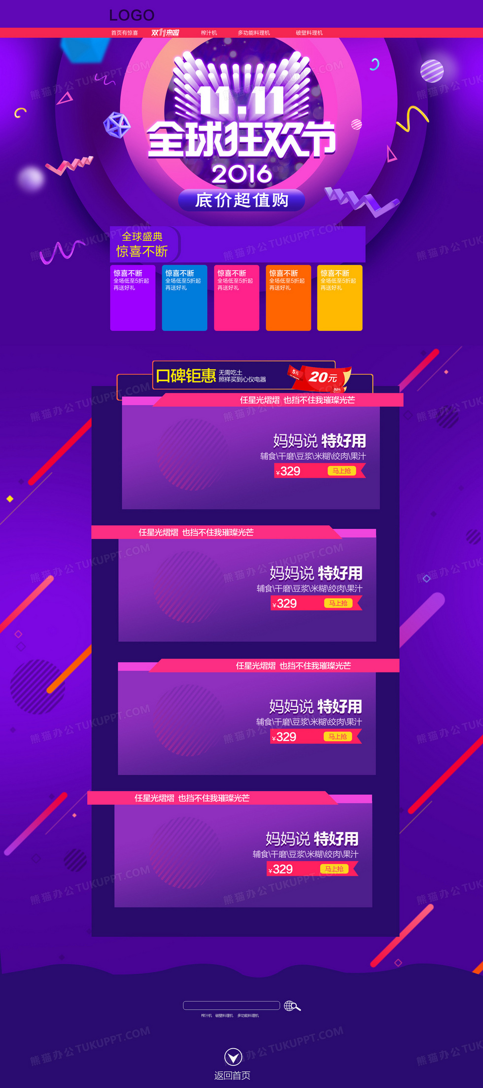本作品内容为双十一首页背景模板, 格式为 psd, 图片尺寸为1920 x 4324, 作品中背景图片无需修改, 源文件无水印,可以直接使用, 欢迎使用熊猫办公。 如认为平台内容涉嫌侵权,可通过邮件:tousu@tukuppt.com提出书面通知,我们将及时处理。