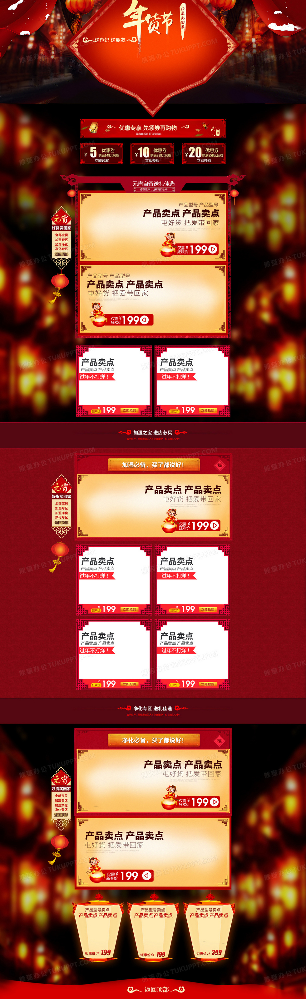 本作品内容为年货节首页背景, 格式为 psd, 图片尺寸为1920 x 6260, 作品中背景图片无需修改, 源文件无水印,可以直接使用, 欢迎使用熊猫办公。 如认为平台内容涉嫌侵权,可通过邮件:tousu@tukuppt.com提出书面通知,我们将及时处理。