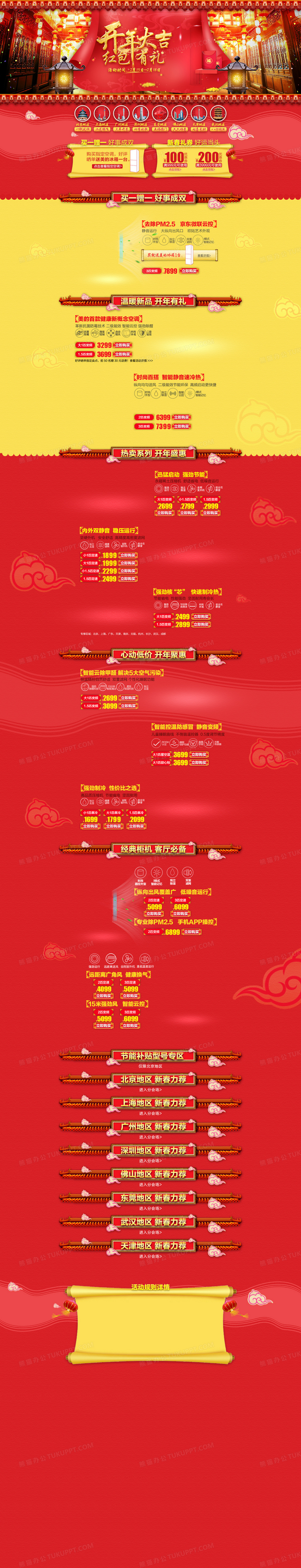 本作品内容为红色大气开年大吉年货节家电数码首页背景, 格式为 psd, 图片尺寸为1920 x 10000, 作品中背景图片无需修改, 源文件无水印,可以直接使用, 欢迎使用熊猫办公。 如认为平台内容涉嫌侵权,可通过邮件:tousu@tukuppt.com提出书面通知,我们将及时处理。