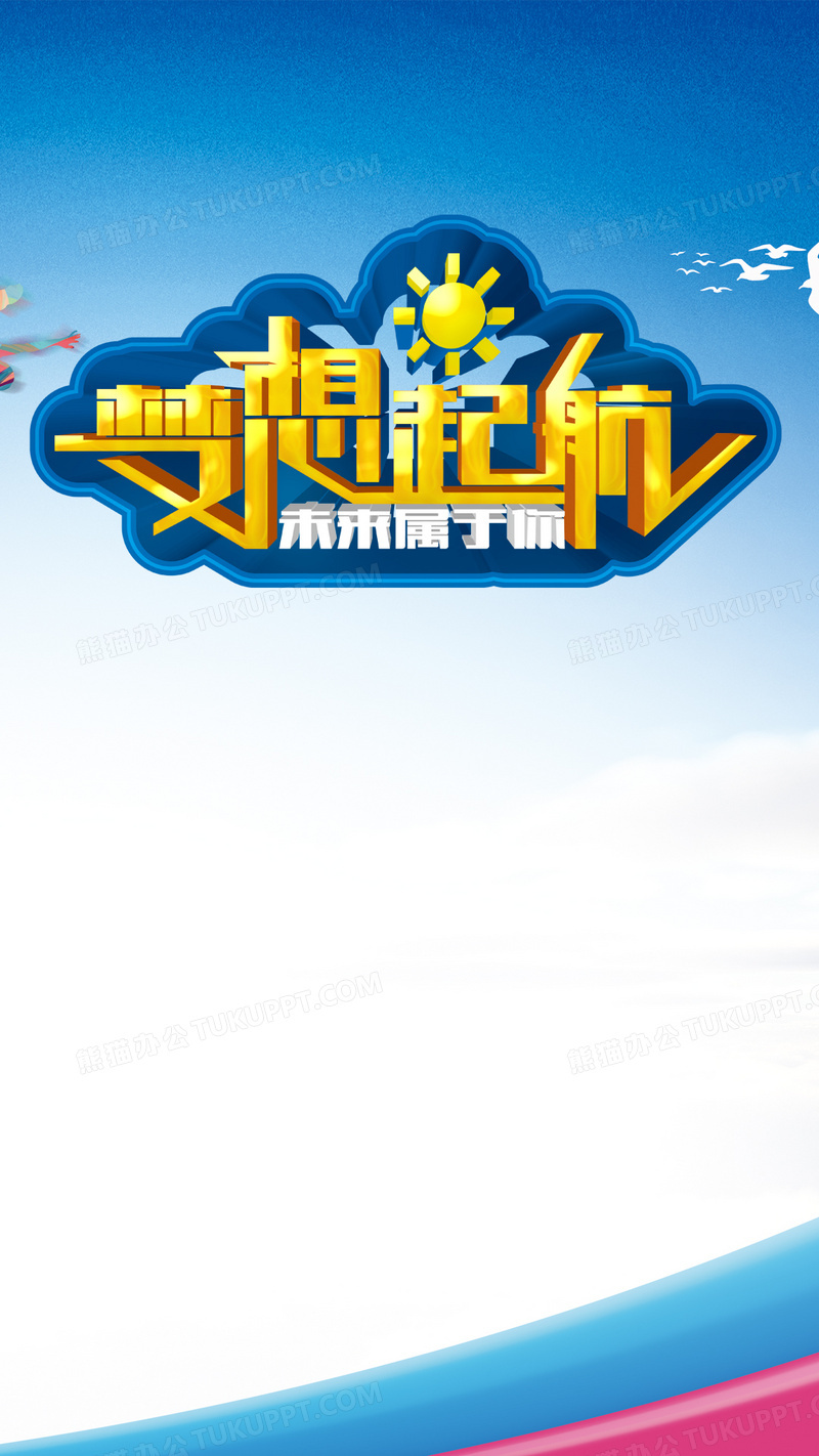 本作品内容为梦想起航H5背景, 格式为 jpg, 图片尺寸为1080 x 1920, 作品中背景图片无需修改, 源文件无水印,可以直接使用, 欢迎使用熊猫办公。 如认为平台内容涉嫌侵权,可通过邮件:tousu@tukuppt.com提出书面通知,我们将及时处理。