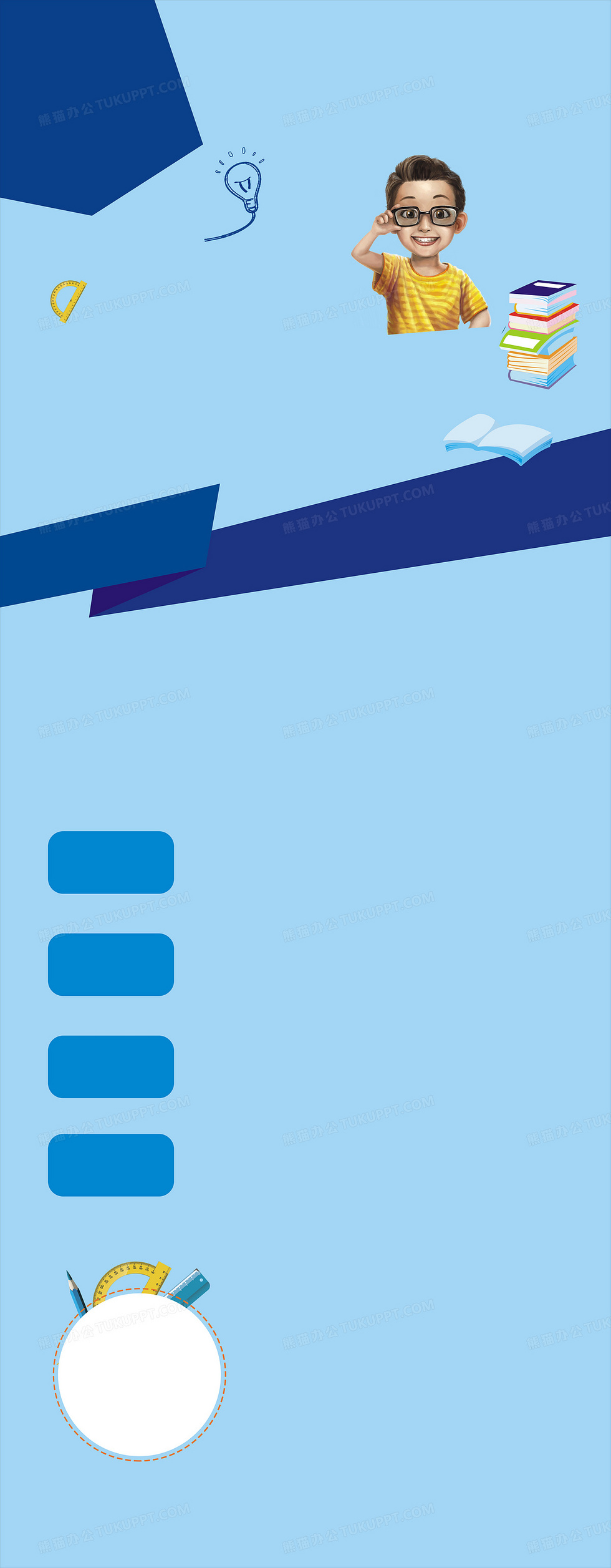 本作品内容为儿童教育蓝色扁平化插图背景, 格式为 cdr, 图片尺寸为9213 x 23623, 作品中背景图片无需修改, 源文件无水印,可以直接使用, 欢迎使用熊猫办公。 如认为平台内容涉嫌侵权,可通过邮件:tousu@tukuppt.com提出书面通知,我们将及时处理。